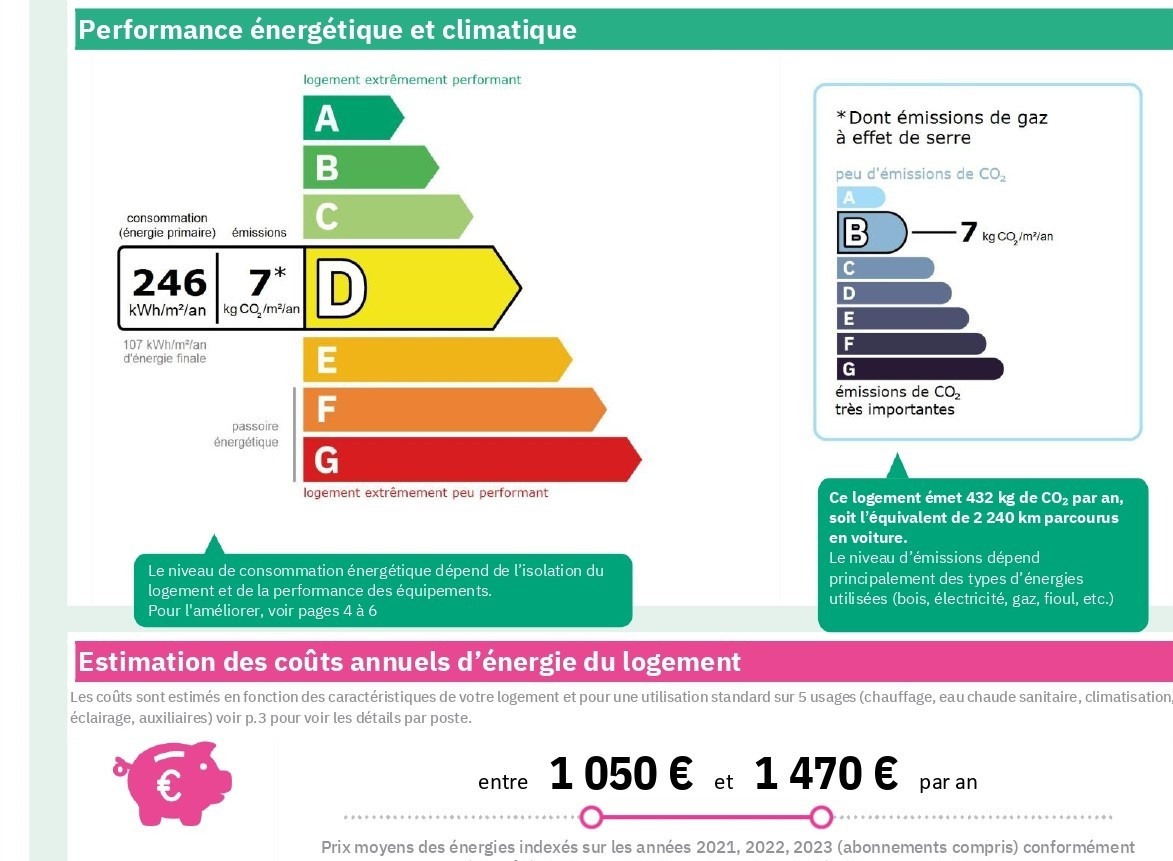 Montant estimé des dépenses annuelles d'énergie pour un usage standard est compris entre 1 050 € et 1 470 € . Prix moyens des énergies indexés sur les années 2021, 2022 et 2023 (abonnements compris).