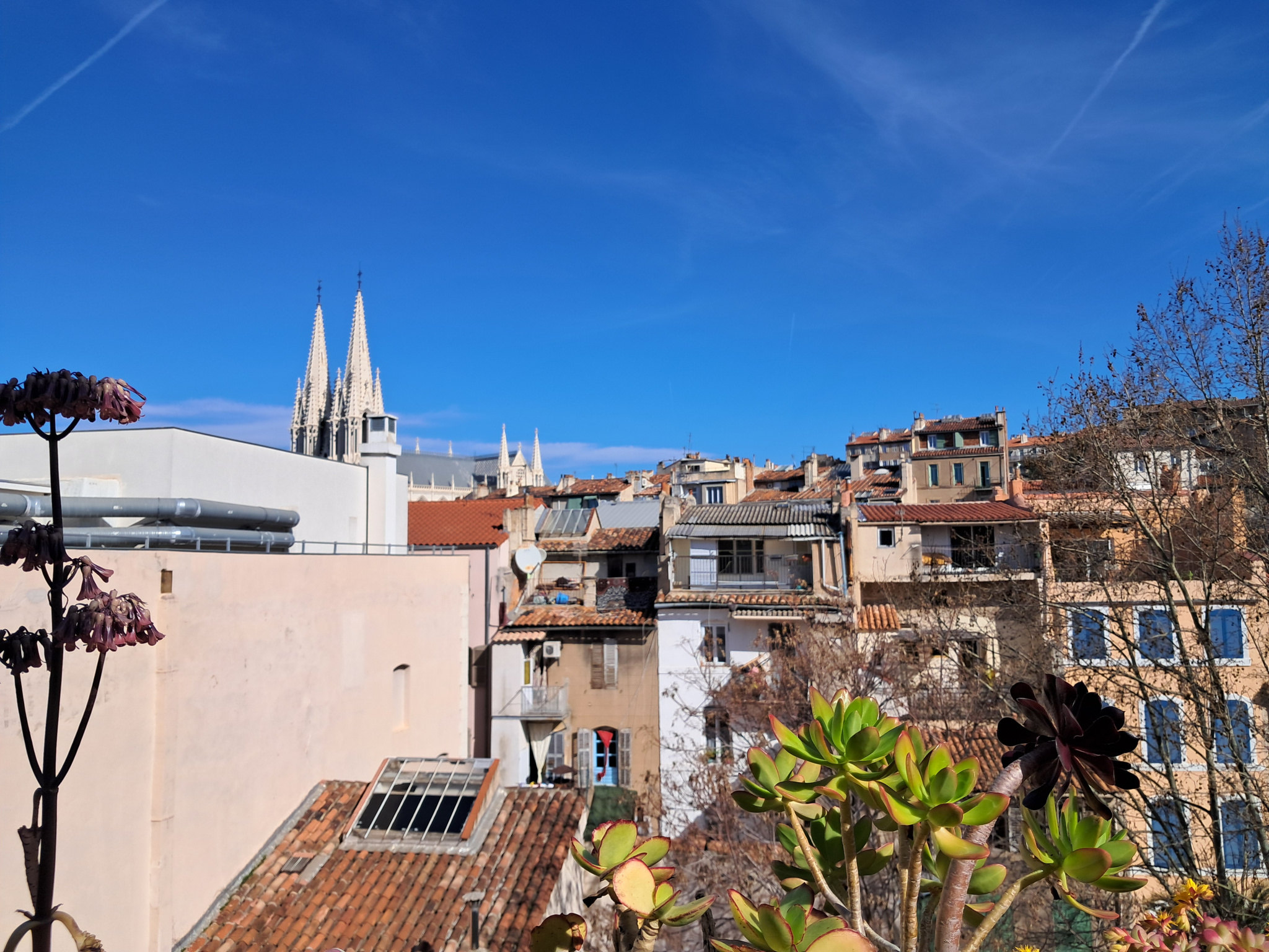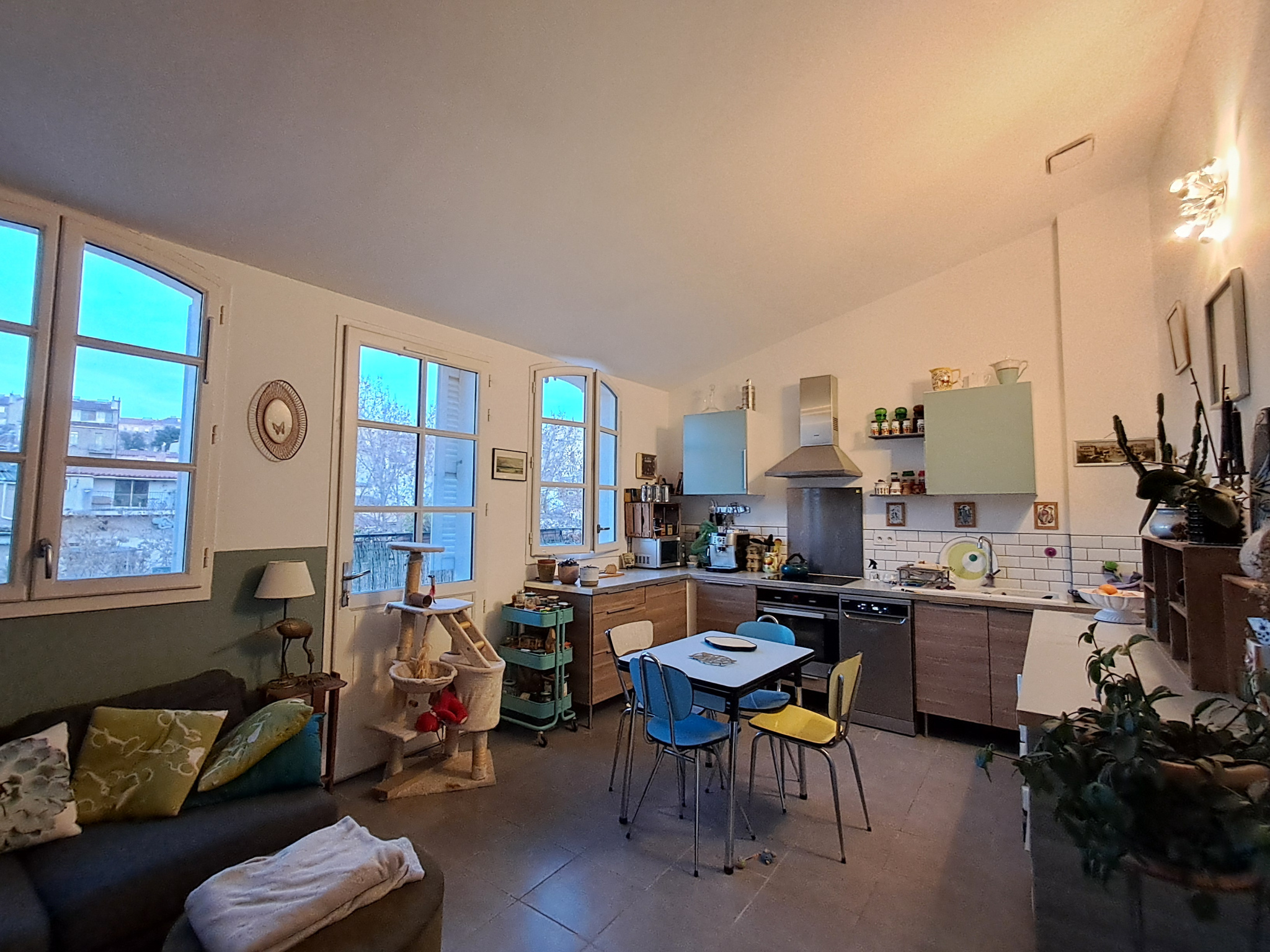 L'Immobilière Ghiri vous propose EN EXCLUSIVITE un appartement traversant de T3 avec vue sur Jardin et l'Eglise des Réformés à Vendre à Marseille 13001 Proche des Réformés et de la Plaine. Cet appartement est situé au 4e et dernier étage dans un immeuble ancien sans ascenseur, en parfaite état. Sa superficie Loi carrez est de 51,50m² plus un balcon de 4,30m², une petite terrassede 4,90m² et une mezzanine 7,30m². Il comprend côté jardin un séjour avec cuisine ouverte et aménagée donnant accés direct sur la terrasse, une mezzanine de 7m², de deux chambres donnant sur un balcon filant. Chauffage électrique, double vitrage, syndic bénévole Nombre de lots de copropriété 7, charges annuelle 1000€, Taxe foncière 1107€, DPE : D/B Contact au 06 12 04 66 00 LImmobilière Ghiri agence immobilière Marseille 13001 proche Boulevard Longchamp